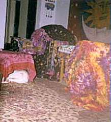 my friend is sitting in above. Between the two -- a round table covered by embroided
