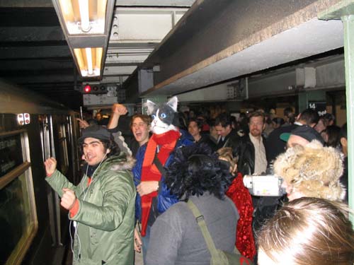 All photos below by Josh Karpf, seen at far right in the above photo by Jake "Bluejake" Dobkin of Gothamist